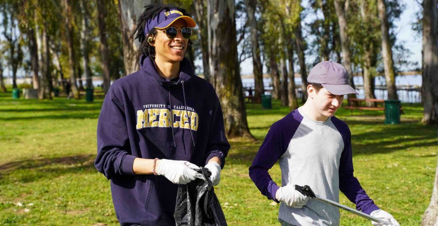 As part of the service theme, students participated in the annual Day of Service at Lake Yosemite, hosted in collaboration with the Community Engagement Center and Merced County Parks and Recreation. More than 50 students and alumni took part in the event, working together to clean and maintain a location frequently used by the campus community.